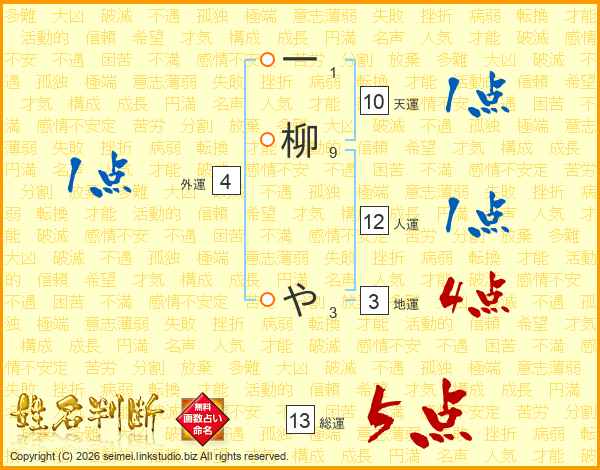 一柳やさんの総運は13画の5点!