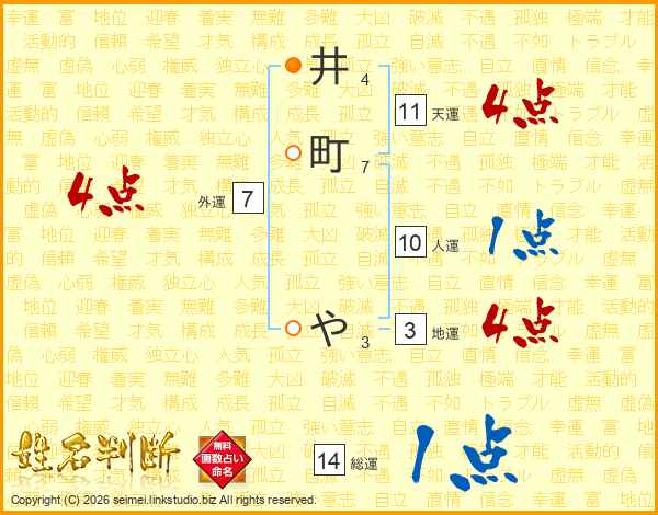 井町やさんの総運は14画の1点!
