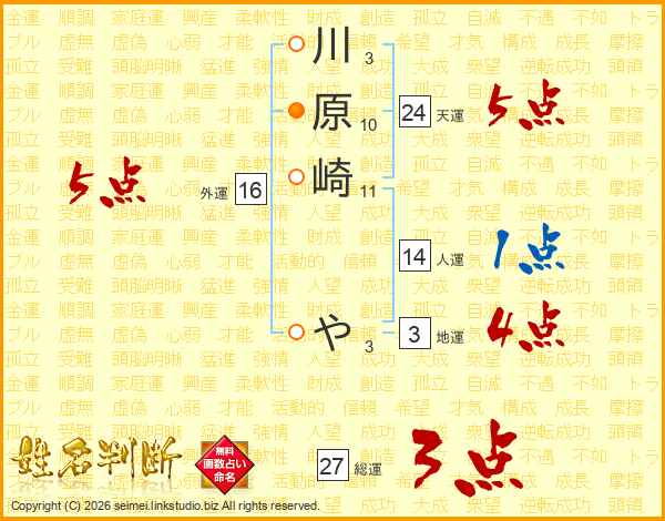 川原崎やさんの総運は27画の3点!