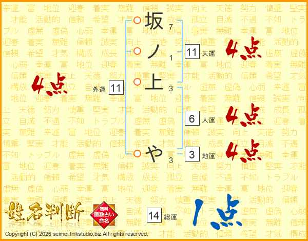 坂ノ上やさんの天運は11画の4点!