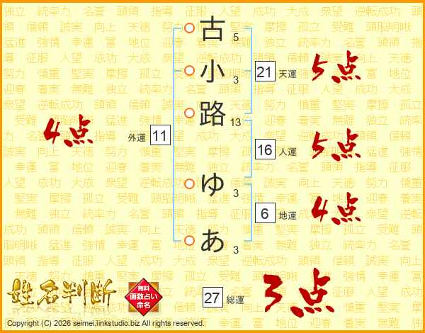 古小路ゆあさんの総運は27画の3点!