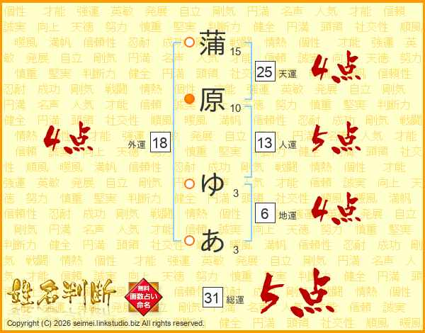 蒲原ゆあさんの天運は25画の4点!