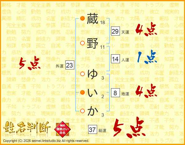 蔵野ゆいかさんの総運は37画の5点!
