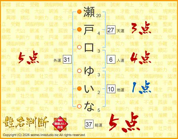 瀬戸口ゆいなさんの外運は31画の5点!