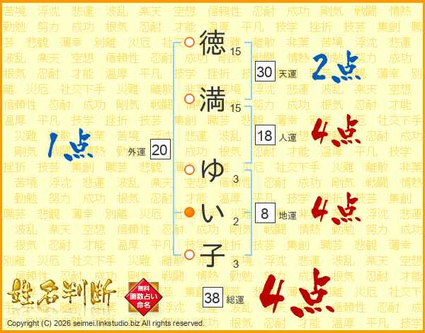 徳満ゆい子さんの総運は38画の4点!