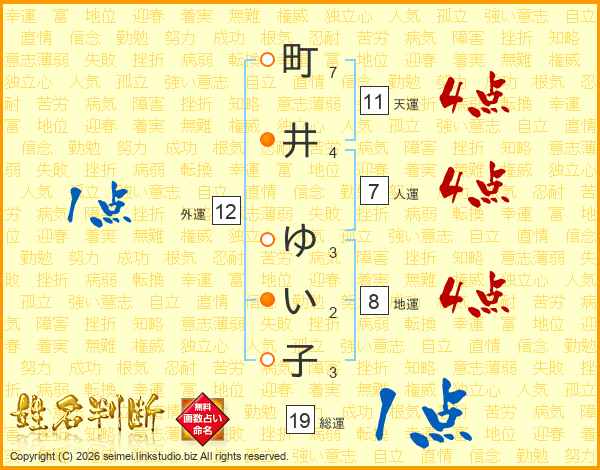 町井ゆい子さんの天運は11画の4点!