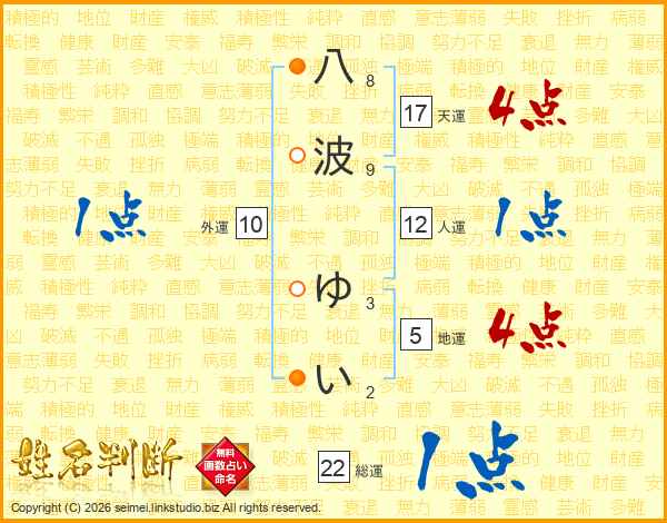 八波ゆいさんの天運は17画の4点!