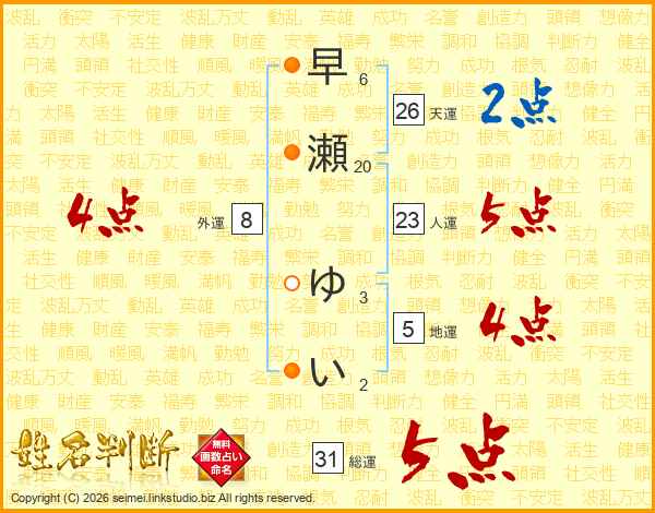 早瀬ゆいさんの天運は26画の2点!