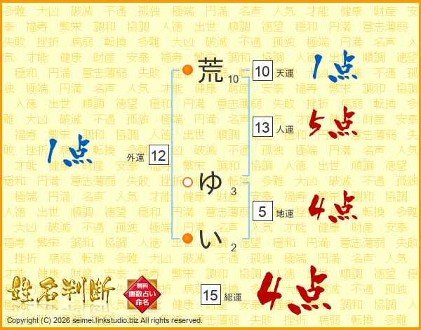 荒ゆいさんの総運は15画の4点!
