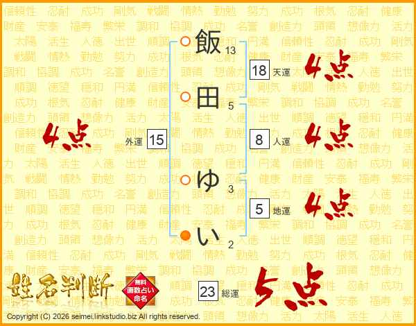 飯田ゆいさんの天運は18画の4点!