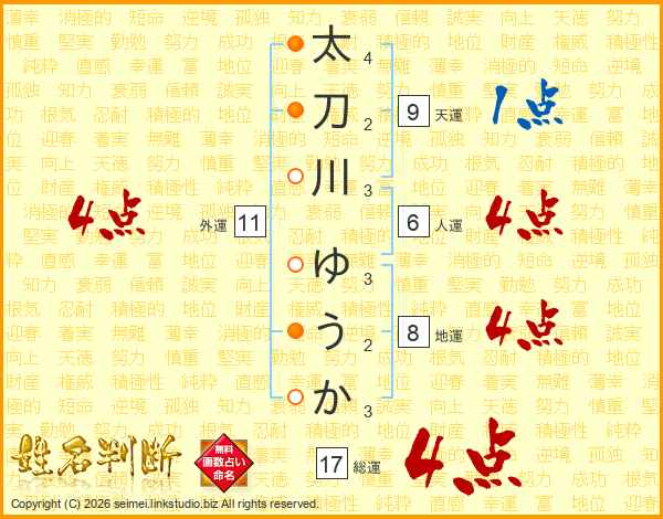太刀川ゆうかさんの総運は17画の4点!