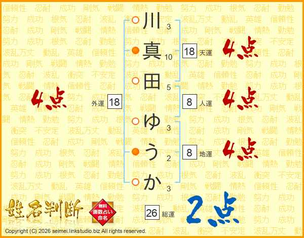 川真田ゆうかさんの総運は26画の2点!
