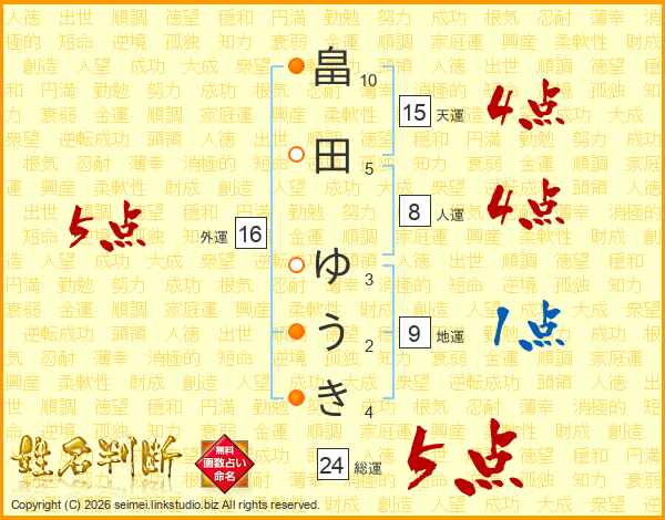 畠田ゆうきさんの総運は24画の5点!