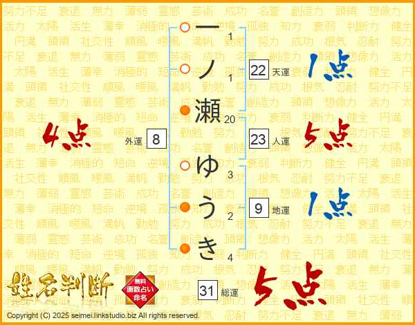 一ノ瀬ゆうきさんの総運は31画の5点!