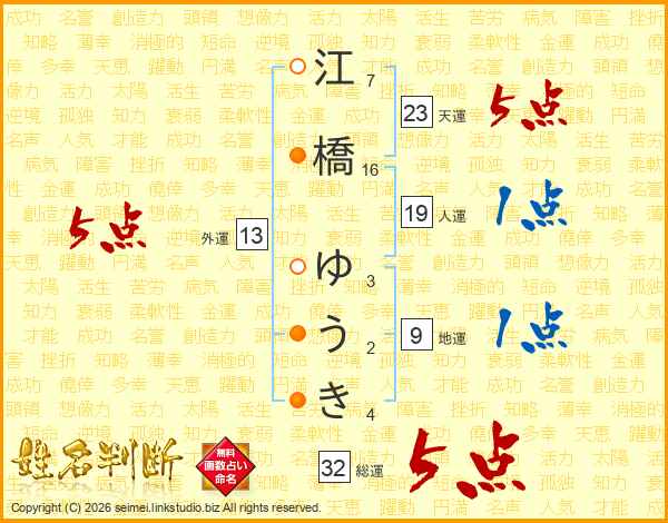 江橋ゆうきさんの総運は32画の5点!
