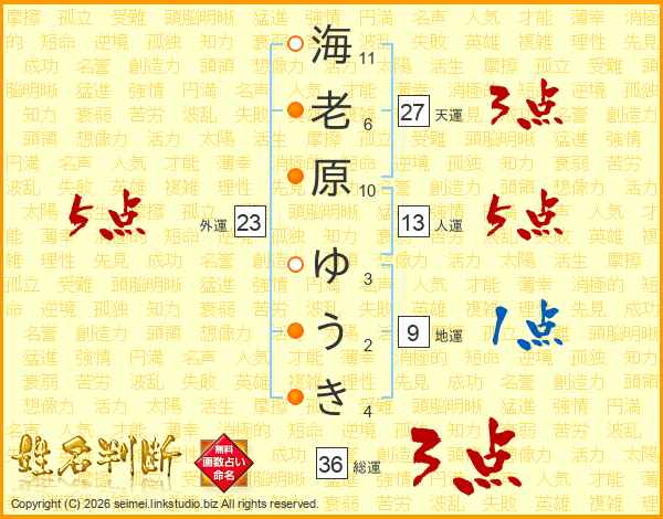 海老原ゆうきさんの天運は27画の3点!