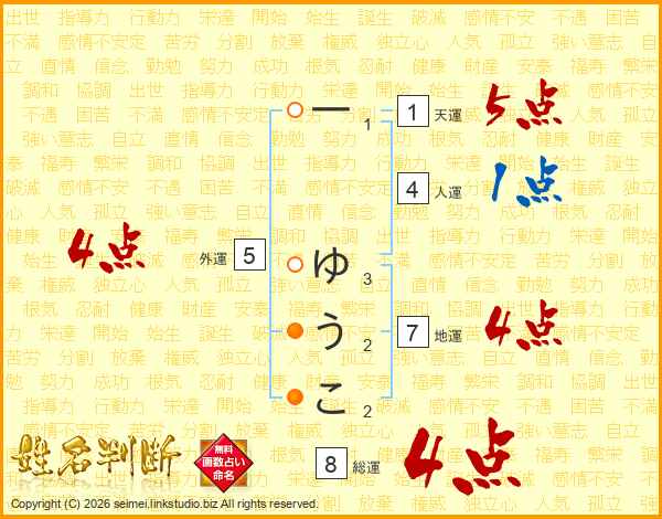 一ゆうこさんの総運は8画の4点!