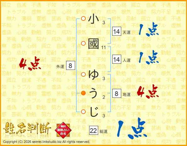 小國ゆうじさんの総運は22画の1点!