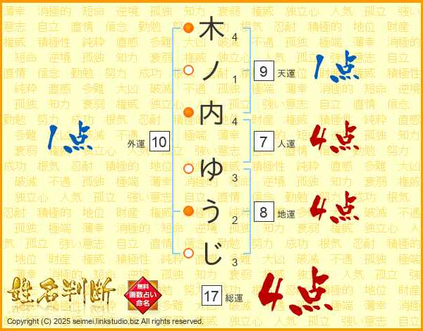 木(4画)ノ(1画)内(4画) ゆ(3画)う(2画)じ(3画)