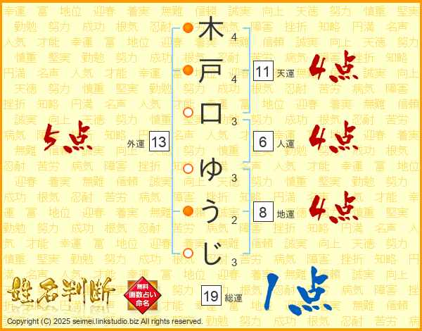 木(4画)戸(4画)口(3画) ゆ(3画)う(2画)じ(3画)