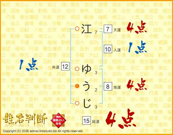 江(7画) ゆ(3画)う(2画)じ(3画)