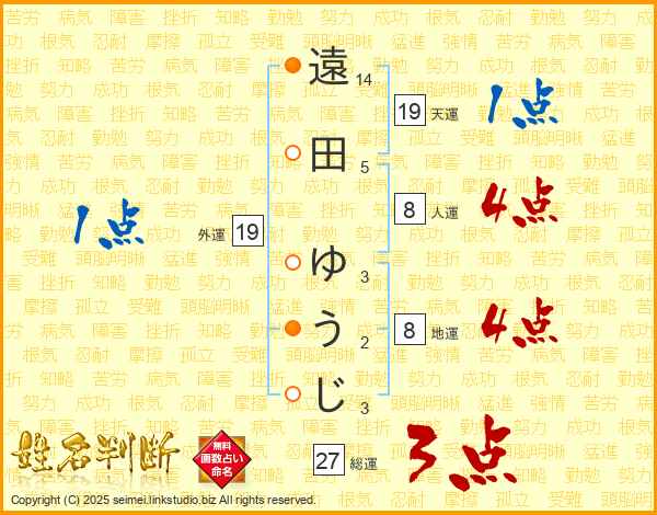 遠(14画)田(5画) ゆ(3画)う(2画)じ(3画)