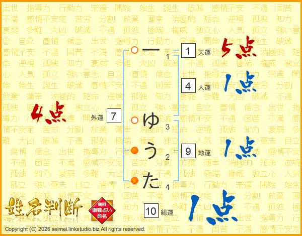 一ゆうたさんの総運は10画の1点!