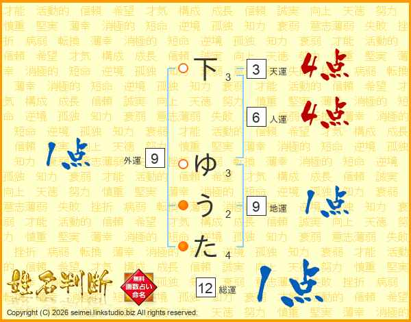 下ゆうたさんの総運は12画の1点!
