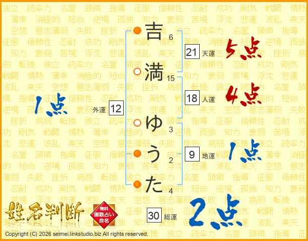 吉満ゆうたさんの総運は30画の2点!