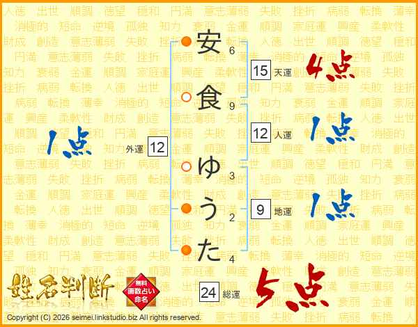 安食ゆうたさんの総運は24画の5点!