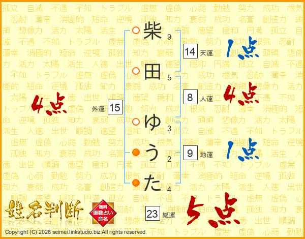 柴田ゆうたさんの総運は23画の5点!