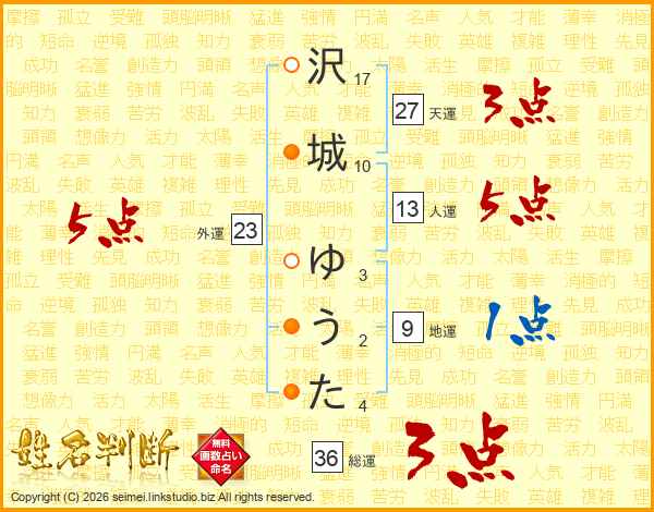 沢城ゆうたさんの総運は36画の3点!