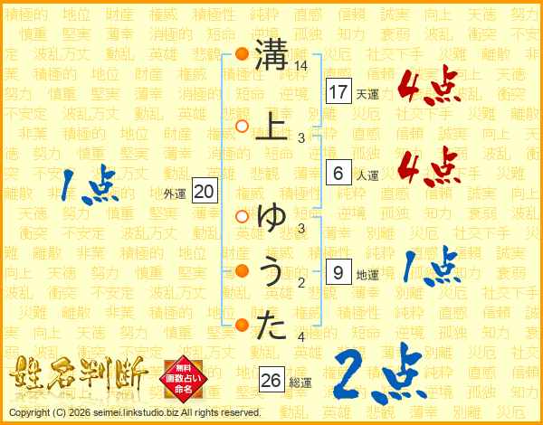 溝上ゆうたさんの総運は26画の2点!