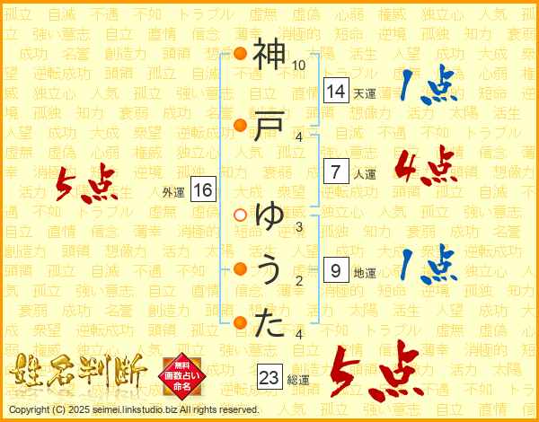 神戸ゆうたさんの総運は23画の5点!