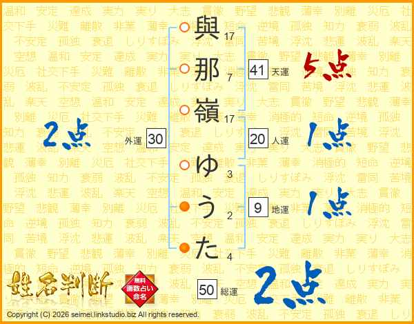 與那嶺ゆうたさんの総運は50画の2点!