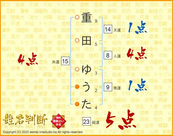 重田ゆうたさんの総運は23画の5点!
