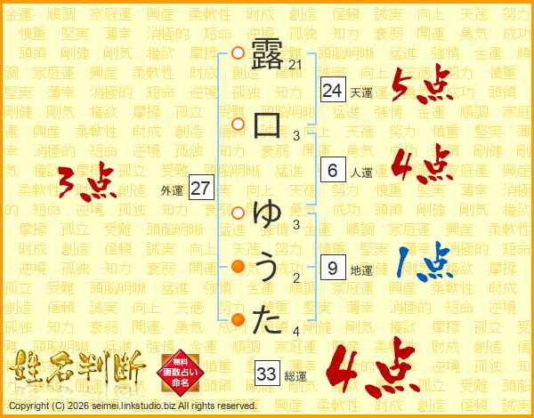露口ゆうたさんの総運は33画の4点!