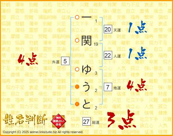 一(1画)関(19画) ゆ(3画)う(2画)と(2画)