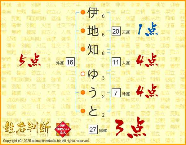 伊地知ゆうとさんの総運は27画の3点!
