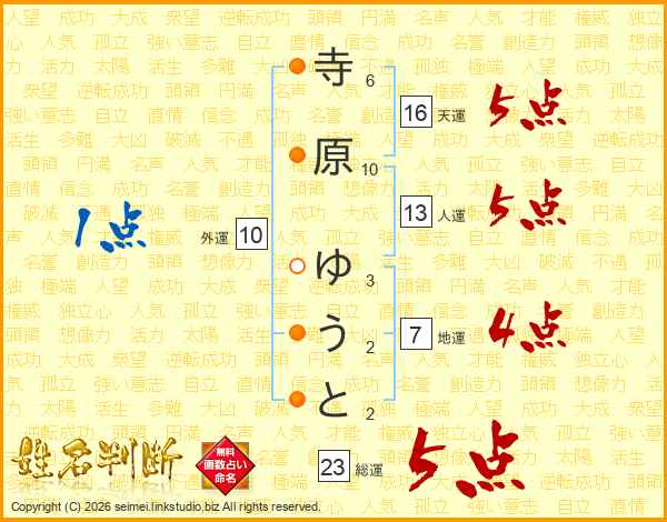 寺(6画)原(10画) ゆ(3画)う(2画)と(2画)