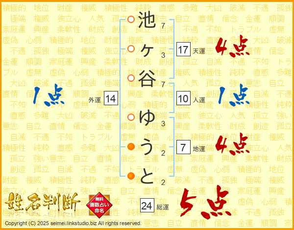 池ヶ谷ゆうとさんの天運は17画の4点!