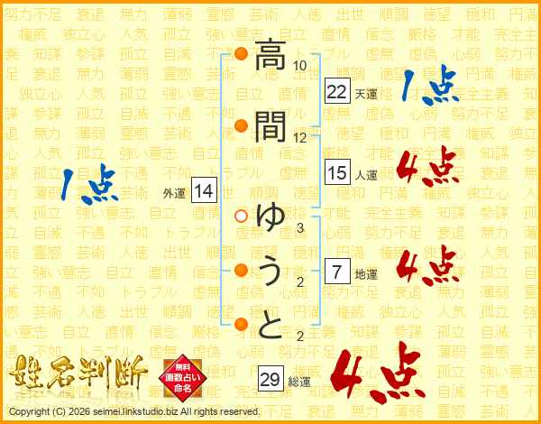 高間ゆうとさんの総運は29画の4点!