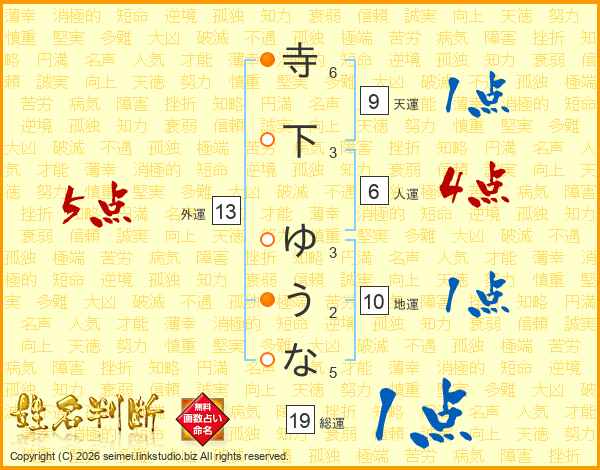 寺下ゆうなさんの総運は19画の1点!