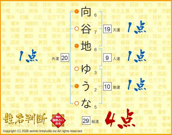 向谷地ゆうなさんの総運は29画の4点!