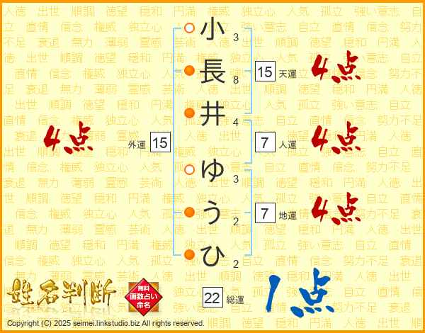小(3画)長(8画)井(4画) ゆ(3画)う(2画)ひ(2画)
