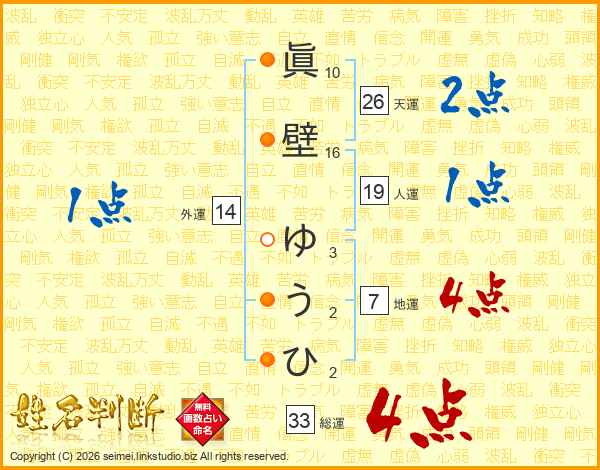 眞壁ゆうひさんの総運は33画の4点!
