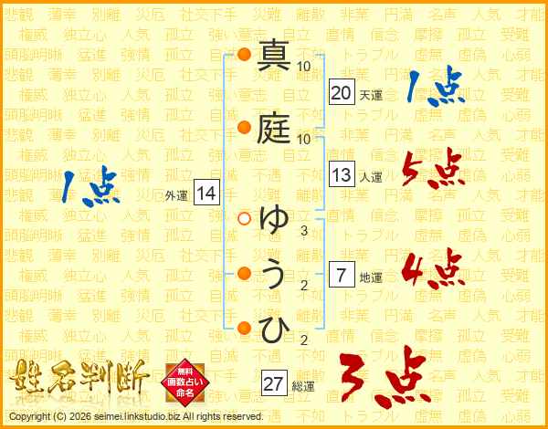 真庭ゆうひさんの総運は27画の3点!