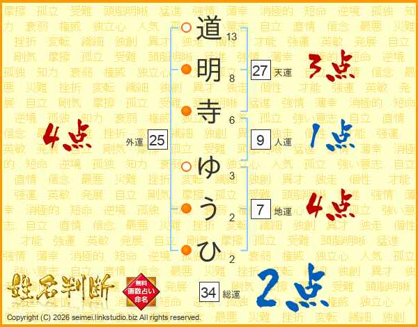 道明寺ゆうひさんの総運は34画の2点!