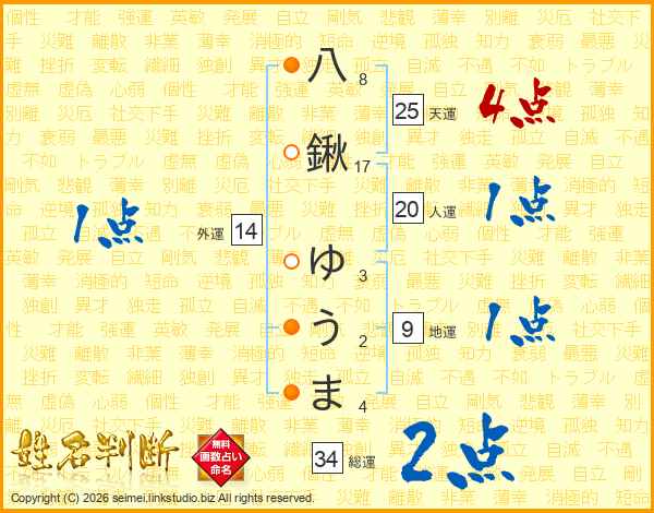 八鍬ゆうまさんの総運は34画の2点!