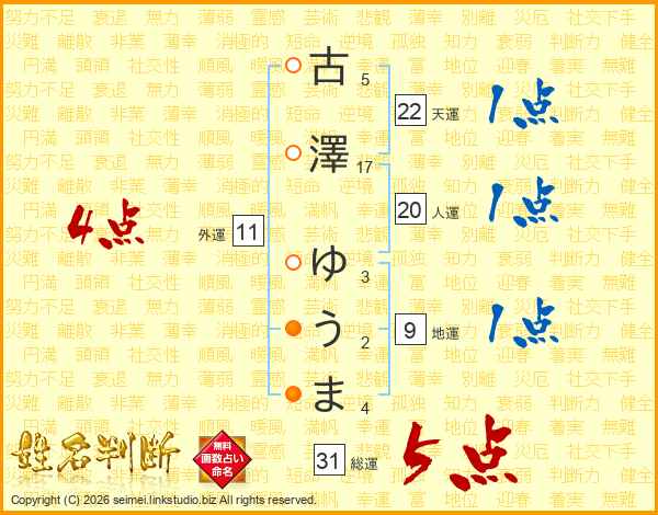 古澤ゆうまさんの総運は31画の5点!